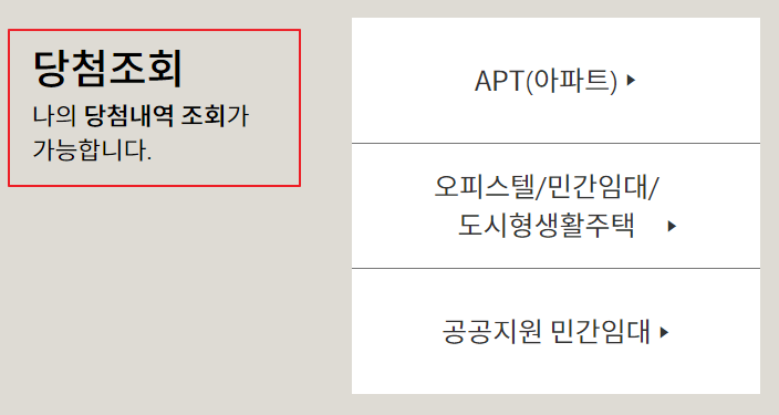 - 청약을 신청하였으면 당첨이 되었는지 안 되었는지도 확인이 가능합니다. 보통 당첨자 조회는 0시에 발표되는 경우가 많기 때문에 참고하시길 바라며, 당첨이 되지 않았다 하더라도 계속해서 청약을 신청하면 그만큼 당첨 확률을 높일 수 있습니다.